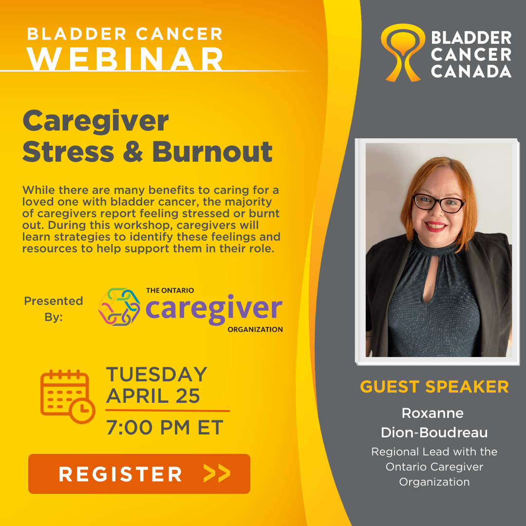 While there are many benefits to caring for a loved one with bladder cancer, the majority of caregivers report feeling stressed or burnt out. During this workshop, caregivers will learn strategies to identify these feelings and resources to help support them in their role.
